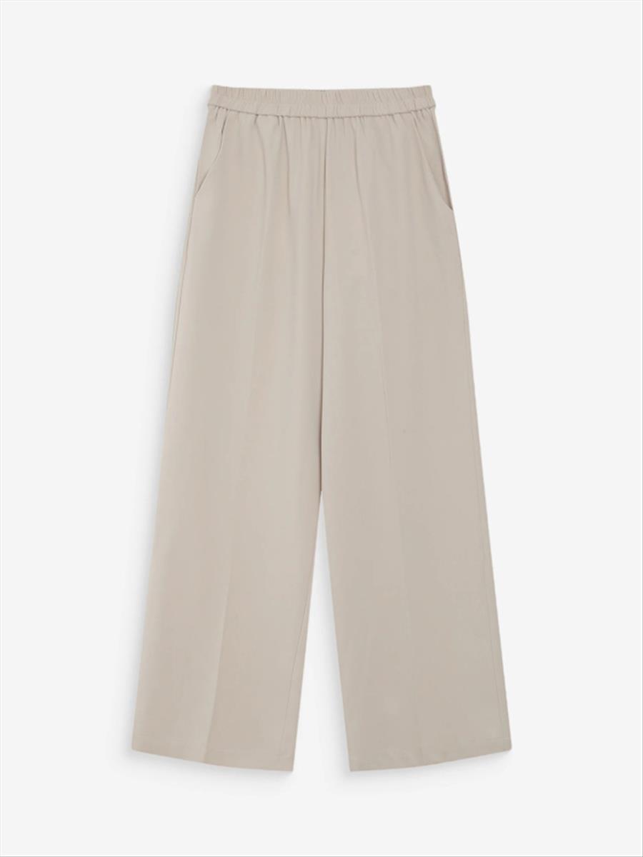 The NOBLESSE fluid pants are wide-leg pants with an elastic waistband that create a relaxed silhouette. Lightweight and flowing, the NOBLESSE wide-leg pants are comfortable to wear. This wardrobe essential is a must-have for a casual look.
