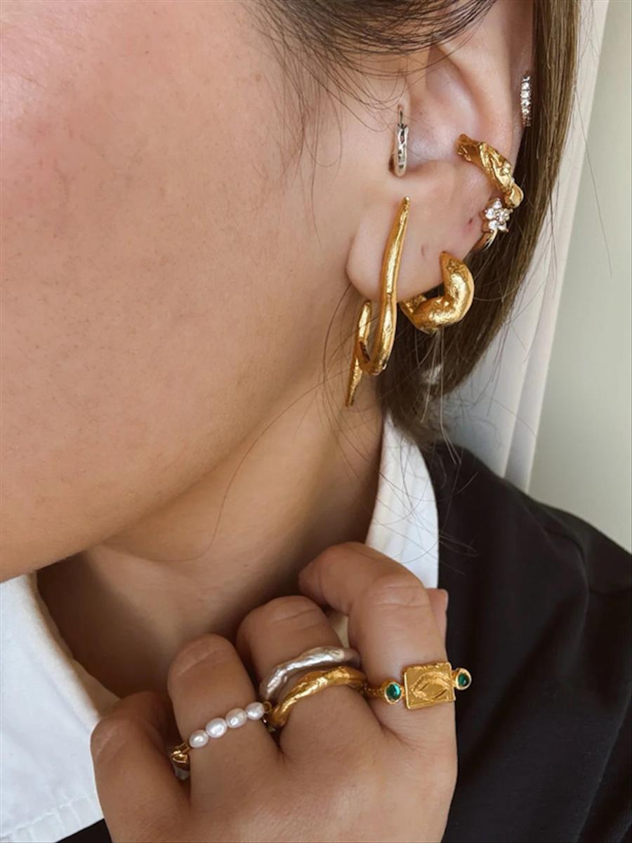 Petit oeil ring belongs to “C’est la vie” collection. The design is made of 24k goldplated bronze with semi-precious stones. It is an adjustable open ring.