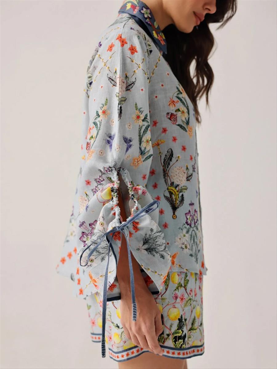 Adjustable sleeve drawstrings creating a soft ruched effect