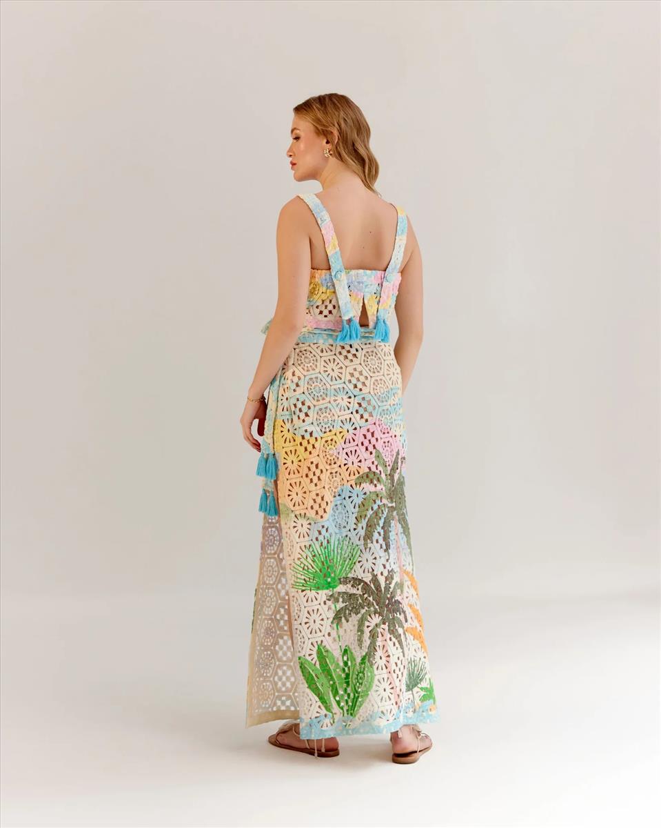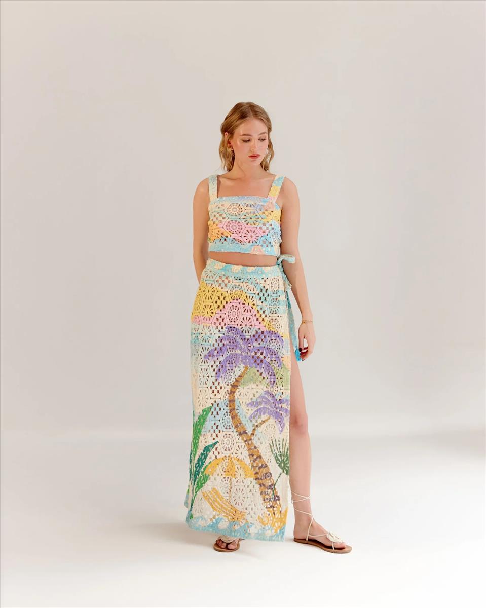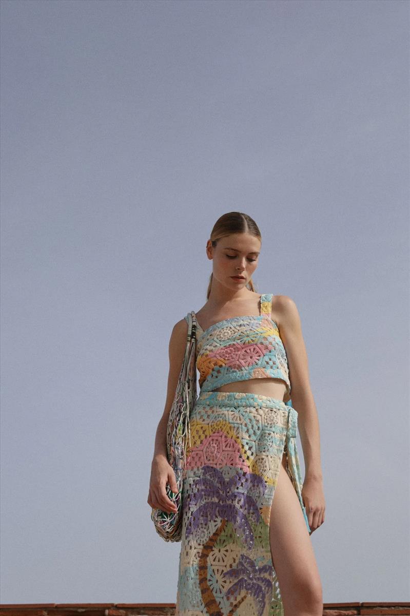 Το Magda τοπ εχει αβίαστη κομψότητα και παιχνιδιάρικη γοητεία. Αυτό το τοπ είναι απο ένα όμορφα κατασκευασμένο ύφασμα κροσέ, με το πάνω μέρος να διαθέτει λεπτές φούντες διακοσμημένες με χάντρες στις τιράντες για μια πινελιά μποέμικης πινελιάς Είτε κάνετε βόλτα στην παραλία είτε συμμετέχετε σε ένα καλοκαιρινό πάρτι στον κήπο, αυτό το σετ προσφέρει άνεση και στυλ. Συνδυάστε το με σανδάλια για μια χαλαρή παραθαλάσσια ατμόσφαιρα ή διακοσμήστε το με πλατφόρμες για μια κομψή βραδινή εμφάνιση.